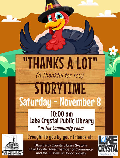 Brought to you by your friends at the Lake Crystal Public Library, LCWM National Jr. Honor Society and the